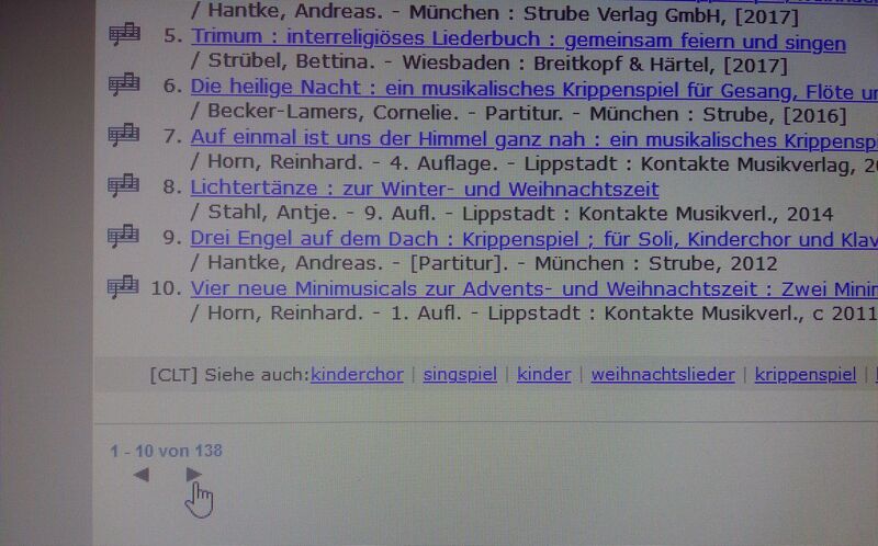 Für ganz Neugierige und gute Planer haben wir schließlich noch ein Zusatzgeschenk: es gibt auch die Stichworte "Ostern", "Passion" oder "Trinitatiszeit" … Unsere Bibliothekarin ist Ihnen gern bei der Recherche behilflich und wünscht Ihnen ein frohes musikalisches Fest!