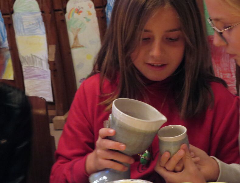 Abendmahlsgeschirr aus Ton in zwei Farbvarianten: