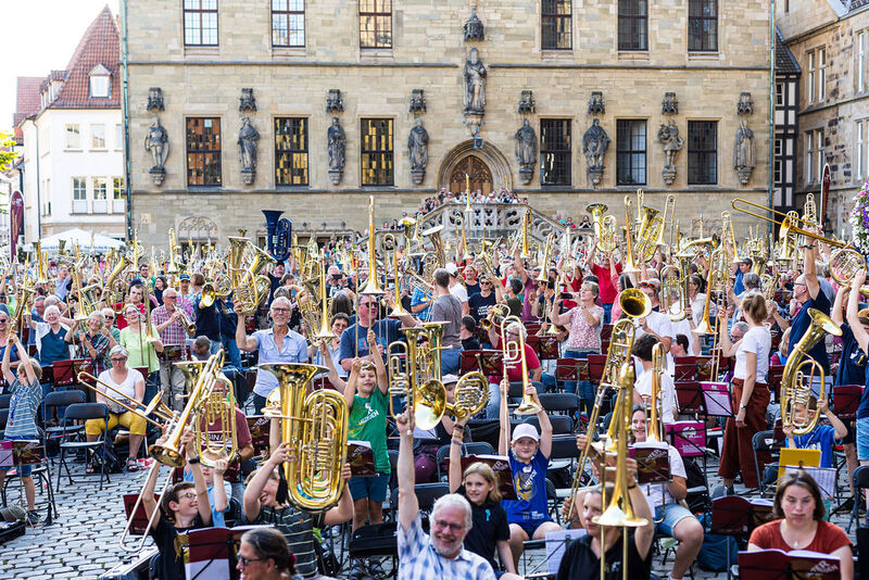 Mehr als 1000 Bläser:innen haben vom 7. bis 10. September 2023 die Stadt Osnabrück zum Klingen gebracht — in Workshops, Serenaden, Gottesdiensten oder in der Fußgängerzone. Die Höhepunkte waren insbesondere das Eröffnungskonzert des Landesjugendposaunenchors und die große Serenade als Abschluss des Eröffnungstages.